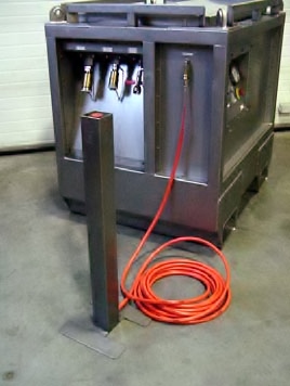 Electric and diesel driven power units consume energy even when the system is on pressure and no flow is required. The Backpacker Buffalo Power Unit has an air driven plunger pump that is designed to stall when the set hydraulic pressure is reached and no flow is required. This means no energy is consumed in this idle mode making the unit highly efficient because this situation is , in many case, 80% of the time the power unit is in operation. The unit can be used in an explosive environment when the earthling bosses of the unit are connected, grounding the unit.
