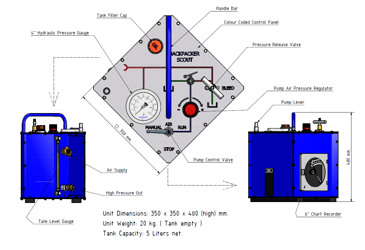 - The unit has an Air Powered Backpacker LJH -80 series pump with hand operating system (patented) so also without air you can pressurize your control line.